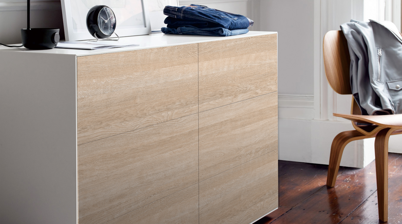 橡木原色深淺交織呈現(xiàn),輔以淡淡的灰色,表現(xiàn)出最自然的質(zhì)感,在與其他家具的配合中,散發(fā)著浪漫的自然氣息,拉近人與自然之間的距離。