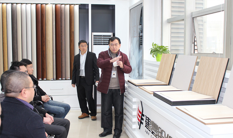首先由設(shè)計(jì)師羅剛鋒及銷售王子俊分別向大家介紹新品的花色、不同樹種的紋理特征及其應(yīng)用。隨后王子俊挑選了幾款有代表性的花色,著重介紹了花色的可應(yīng)用場景。